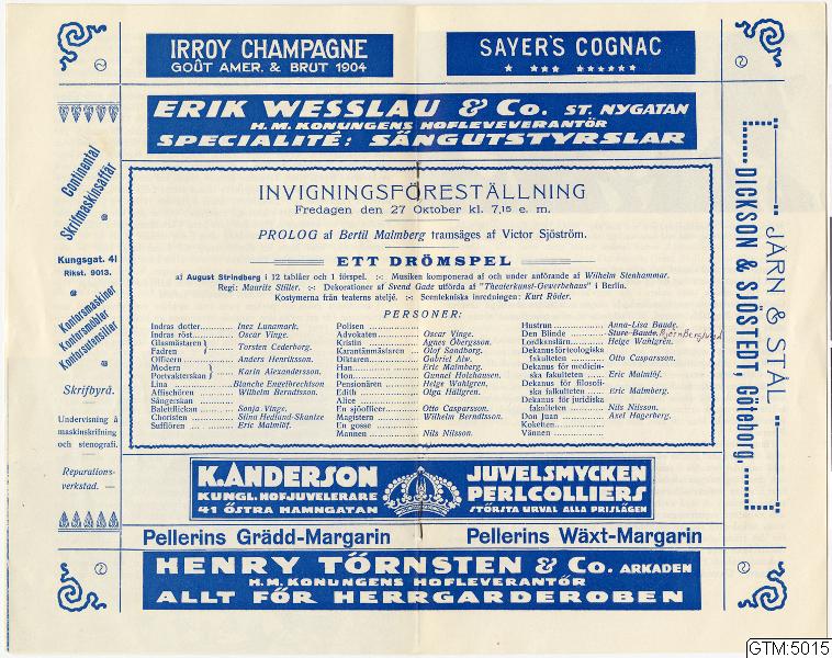 Lorensbergsteatern i Göteborg öppnade 1916 och leddes under sina första år av Mauritz Stiller, strax innan han blev internationellt känd som filmregissör. Till invigningen sattes August Strindbergs Ett drömspel upp, med scenmusik av Wilhelm Stenhammar – hans första försök inom genren och början på en rad scenmusikverk, bland annat till pjäser av William Shakespeare, Rabindranath Tagore och Hjalmar Bergman.